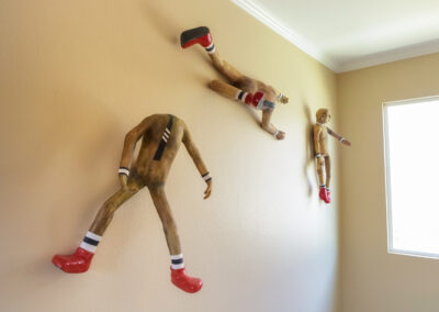 My interpretation and concept of the Ba bird takes a more positive approach rather than a destructive one. Instead of calling for the demise of sailors, my Ba birds are on the lookout to detour such calamities. Much like the Chinese Foo Dogs who stand guard to ward off evil spirits, my Ba birds take on the same significance. My Ba birds stand guard to protect against negative energy and help to maintain balance in the world. The hands that hold the birds represent the connection between the human and the raptor. There is a gesture in the way the hand comes forth and the way the Ba birds hand hold onto the fingers of the hand. This connection makes both figures become one both in shape and form.